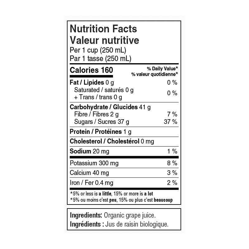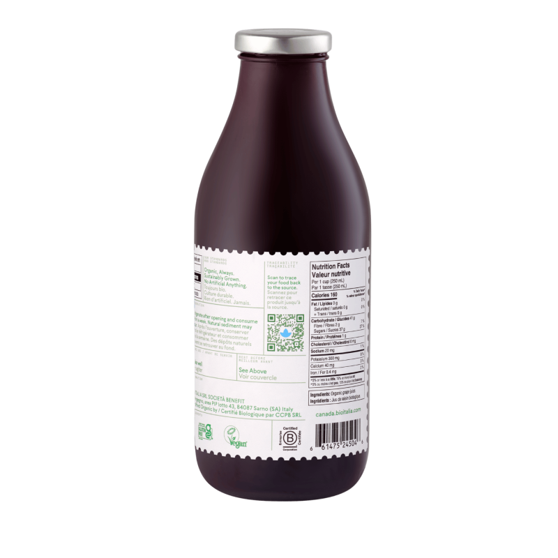 Le jus de raisin biologique est fabriqué à partir de raisins 100% biologiques.