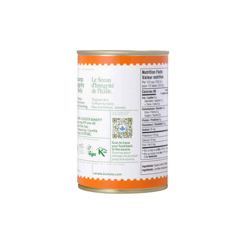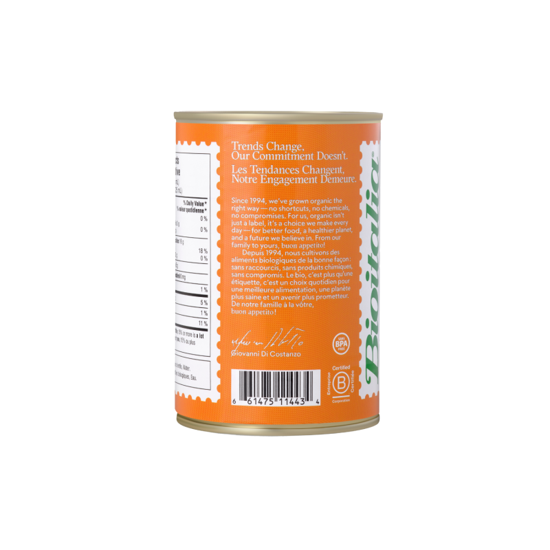 Nos légumineuses en conserve sont cultivées selon la méthode biologique, avec une attention particulière à la protection de l’environnement et à la qualité du produit. Elles sont emballées dans des conserves sans BPA : compte tenu de l’alerte sur les marchés internationaux et la récente évaluation de l’Autorité européenne de sécurité des aliments sur la sécurité du BPA, qui réduit considérablement le seuil d'absorption quotidienne tolérable, Bioitalia a décidé de ne pas l'utiliser, bien qu'il ait toujours été sans danger. De plus, cette préparation présente plusieurs avantages : nous n’ajoutons pas de sel à l’eau de cuisson. Les légumineuses sont blanchies à 80 °C. Lorsqu’elles sont encore chaudes, nous les mettons dans les conserves et nous les stérilisons à 121 °C, afin de créer un vide dans la conserve. Pas besoin d’ajouter de sel pour leur conservation.