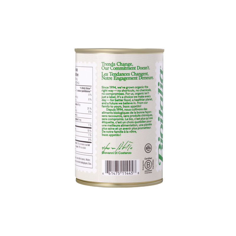 Ces haricots cannellini cuits capturent le goût rustique et nourrissant des légumineuses. Ils fournissent une source naturelle de protéines, de fibres et de nutriments. Dans des conserves SANS BPA.