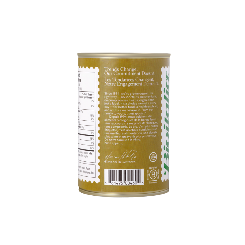 Nos légumineuses en conserve sont cultivées en agriculture biologique, avec un œil attentif concernant la protection de l’environnement et la qualité du produit. Elles sont conditionnées dans des conserves sans BPA. Étant donné l’alerte lancée par le marché international et les dernières réévaluations de l’Autorité européenne de sécurité des aliments concernant la sécurité relative BPA qui réduisent considérablement le seuil journalier tolérable de cette substance, Bioitalia a décidé de ne pas en utiliser dans ces produits, bien qu’ils aient toujours été sans danger. De plus, cette préparation présente plusieurs avantages : nous n’ajoutons pas de sel à l’eau de cuisson. Les légumineuses sont blanchies à 80 °C. Lorsqu’elles sont encore chaudes, nous les mettons dans les conserves et nous les stérilisons à 121°C, afin de créer un vide dans la conserve. Pas besoin d’ajouter de sel pour leur conservation.