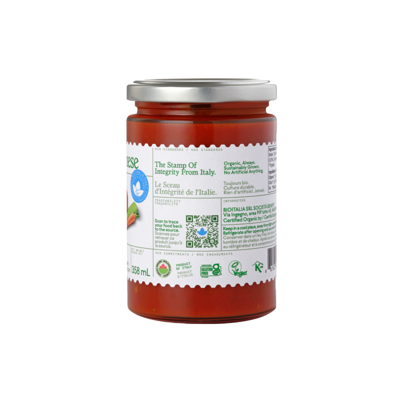 Cette sauce bolognaise végétarienne offre un goût riche grâce à l’association de tomates fraîches, de légumes, d’herbes aromatiques et d’épices sélectionnées.
